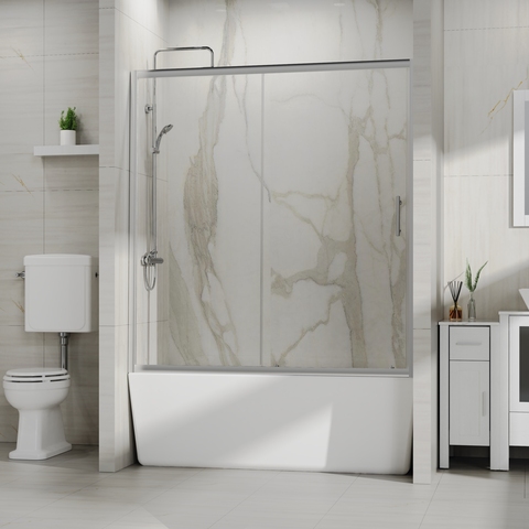Một cửa trượt Chrome hồ sơ tường để tường tắm bao vây trên bồn tắm với thép không gỉ xử lý