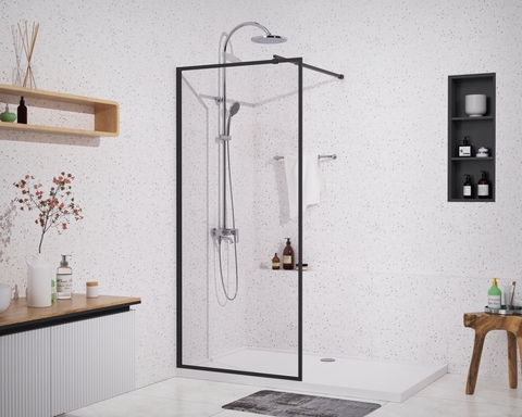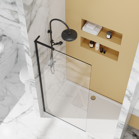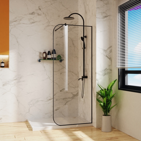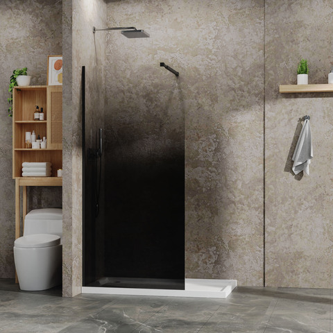 Thiết kế mới màu đen Gradient Glass vòi hoa sen cửa Walkin wetroom với Telescopic hỗ trợ thanh
