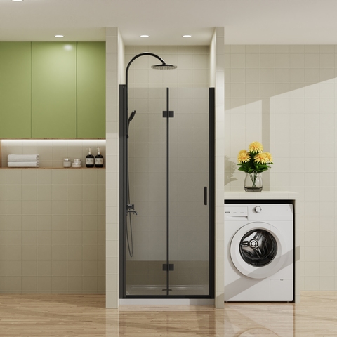Tường phòng tắm để tường gấp cửa tắm với bản lề nylon màu đen