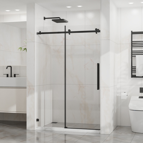 Không có xuống đường sắt thiết kế màu đen đóng khung tường để tường trượt phòng tắm vòi sen cửa với mềm đóng cửa