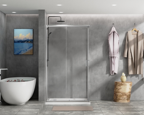 Kiểu dáng đẹp Frameless trượt kính tắm bao vây với kim loại phần cứng-Giải pháp phòng tắm hiện đại